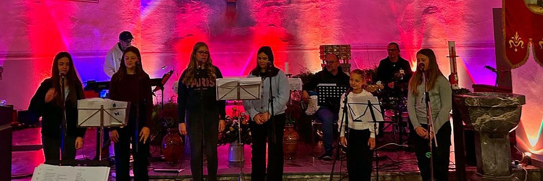 Einen Impuls der besonderen Art konnten die Besucher der Dahlheimer Kirche genießen: das junge Ensemble YoungStars mit seinem Leiter Dietmar Fischenich hatten eine Mischung aus Songs und Gedanken zusammengestellt und präsentierten sie im stimmungsvoll beleuchtetend Kirchenraum. Auch für Kirchenräume ungewohnte Klänge umgaben die Hörer und stimmten ein in Richtung Advent. 3 Musiker der Band Inyourfaith aus Haiger waren gekommen um das Ensemble zu begleiten. Ursprünglich sollte in diesem Jahr ein Kindermusical aufgeführt werden, das aber nicht rechtzeitig fertiggestellt wurde und nun für 2026 geplant ist.