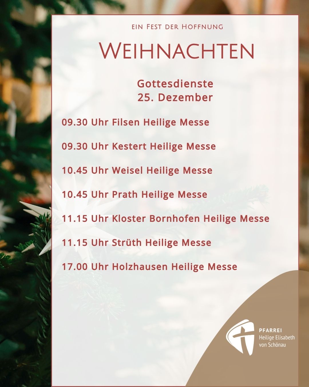 Unsere Gottesdienste in den verschiedenen Gemeinden