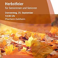 Pfarrei Heilige Elisabeth von Schönau Herbstfeier in Dahlheim Senioren Pfarrei/Canva Dahlheim Herbstfeier in Dahlheim Seniorinnen und Senioren von Dahlheim und Umgebung sind eingeladen zur Herbstfeier